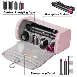 Características do produto: 1. Serve perfeitamente para Dyson Airwrap Styler/Dyson Supersonic e seus acessórios. 2. Cinco compartimentos independentes armazenam Airwrap Styler, tambores de airwrap, escovas, secador de cabelo e outros acessórios, o que pode evitar o atrito entre dispositivos. 3. O material externo de poliuretano é à prova d'água e resistente ao desgaste, e o acolchoamento interno de esponja espessa tem boa proteção. 4. Um bolso de rede elástico é especialmente projetado dentro para armazenar pequenos itens como grampos de cabelo, faixas de cabelo e óleos essenciais para cuidados com o cabelo. 5. O design do gancho pode economizar espaço na bancada e evitar que o modelador fique molhado. Especificações: Quantidade: 1 pacote. Dimensões: 16,5 x 31,5 x 14 cm Peso: 340 g (sem embalagem) Material: PU Cor: como mostrado - Ajuste perfeito: este organizador de viagem é projetado para Dyson Airwrap Styler, com um bolso principal para Airwrap Styler e quatro compartimentos para barris, escovas, secador de cabelo e outros acessórios. Também compatível com Dyson Supersonic e seus acessórios - Proteção total: nossa capa Dyson Airwrap usa couro PU de alta qualidade como material externo, que é à prova d'água e durável, para que você não precise se preocupar com manchas de água e umidade danificando o modelador de cabelo. O interior usa uma almofada de esponja espessa, que é macia e elástica para evitar que a superfície do modelador seja arranhada, oferecendo proteção confiável para o seu equipamento - Mantenha-se organizado: o suporte de airwrap da Dyson tem um bolso interno de malha elástica especialmente projetado para segurar o cano longo do Airwrap, que também pode acomodar facilmente vários acessórios pequenos, como grampos de cabelo, faixas de cabelo e óleos essenciais de cuidados com o cabelo para evitar que eles rolem e colidam na bolsa e evitar derramamentos. Você pode dizer adeus ao trabalho de procurar itens pequenos em todos os lugares e fazer o armazenamento em boa ordem - Design de gancho pendurado: nossa bolsa de viagem para ferramentas de cabelo está equipada com um gancho de metal resistente e antiderrapante. Basta pendurar o gancho no gancho de parede ou prateleira para pendurar a bolsa de armazenamento verticalmente. Isso pode economizar espaço quando muitos itens não podem ser colocados na bancada - Fácil de transportar: as dimensões externas da capa do secador de cabelo são 16,5 x 31,5 x 14 cm. É equipado com uma alça de mão atenciosa, durável e confortável de segurar. Se você colocá-lo em uma mala ou carregá-lo com você, é livre de desconforto e realmente se torna seu parceiro íntimo e elegante durante a viagem