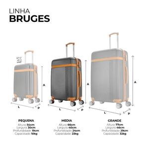 A mala média de viagem Bruges possui 66 cm de altura, 40 cm de largura e 24 cm de profundidade.