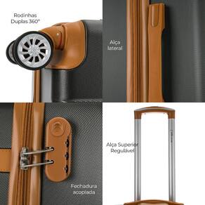 Além disso, a mala de bordo Bruges contém alça superior e carrinho embutido em alumínio.
