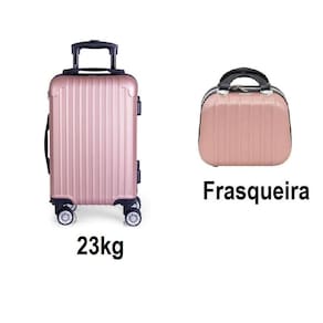 Mala de viagem media 23kg + frasqueira com abs rodinhas 360 Mala 23kg + frasqueira: rosa Descrição da mala: