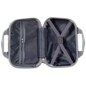 01 mala 23kg + 01 frasqueira Material: abs 04 rodas duplas 360 Carrinho embutido com regulagem de altura Alça superior Bolso interno de separação com zíper Fechadura Cinta elástica cruzada com trava
