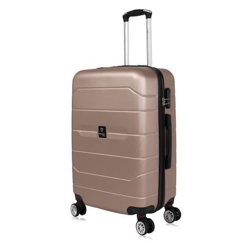 Fabricada em ABS, a mala média é resistente e durável, equipada com 4 rodas duplas 360° que proporcionam fácil manobrabilidade. Possui cadeado fixo com senha para segurança, carrinho com ajuste de altura para maior conforto e alças de mão e lateral. No interior, conta com cinta elástica e divisória em zíper para manter tudo organizado.