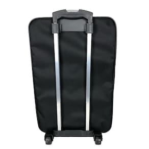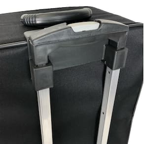 Parte externa: Logo frontal Estrutura revestida com poliéster Alça de mão superior e lateral Carrinho com estágios para regulagem de altura Carrinho de alumínio Fechamento com zíper em nylon Puxador com tubos retráteis, regulagem de altura