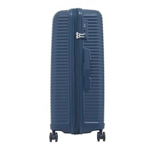 Cor: Azul Marinho Material: Polipropileno Expansível Cinta elástica para fixação de roupas Cadeado TSA com combinação Carrinho retrátil em alumínio com botão liberador Alça superior reforçada e emborrachada 4 rodas duplas com giro 360 Capacidade: 95 Litros