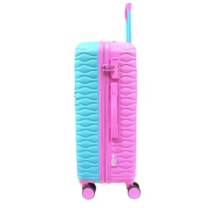 Dupla face: Stitch de um lado, Angel do outro Tamanho: 66 x 43 x 26 cm Peso: 2,5 kg Capacidade: até 23 kg Rodas duplas 360 removíveis Alça retrátil confortável Cadeado externo com segredo Divisória interna com fechamento em zíper Bolso interno com zíper para organização Zíper personalizado e logo em metal resinado Forro em poliéster personalizado Material resistente: ABS durável