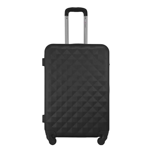 Características - Mala rígida em fibra ABS tamanho média (23kg); - Produto dentro das medidas para mala despachar; - Mala com cadeado de segredo (senha) acoplado; - Forração interna acolchoada;- Alça flexível superior para maior conforto e comodidade; - Bolso interno com zíper;- Rodas giratórias em 360º;- Carrinho retrátil com pintura eletrostática e botão liberador com dois níveis de ajustes.