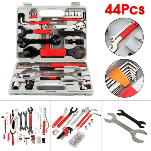 Mala ferramenta reparo bike pro 44 chaves rosca fenda alen Este é um conjunto completo de ferramentas de reparo de ciclismo universal para todas as bicicletas. Fácil de transportar, fácil de usar, este kit de ferramentas é um dever para qualquer proprietário de bicicleta.