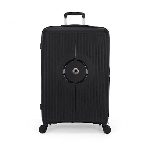 Bolso interno com zíper Forro em poliéster Alça retrátil Rodas duplas com giro 360 Cadeado embutido com segredo Abertura lateral com zíper personalizado Elástico interno Design em alto relevo com logo em metal UP4You Divisória interna com fechamento em zíper Material: PP (polipropileno)