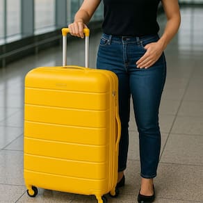 Fabricada em polipropileno resistente, a mala garante durabilidade e proteção contra impactos.
