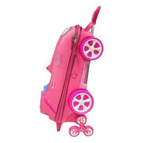 Design 360 inspirado no carro da Barbie, com detalhes em relevo, painel, volante, faróis, rodas com textura realista e para-brisa retrátil. Rodinhas triplas giratórias para transporte estável em qualquer terreno. Alça retrátil ergonômica para manuseio simples por crianças e adultos. Zíper duplo que oferece segurança e praticidade ao abrir e fechar. Compartimento interno espaçoso para roupas, brinquedos e itens essenciais. Materiais resistentes com acabamento de alta qualidade para durabilidade. Identificada para crianças a partir de 3 anos; ótima opção de presente.