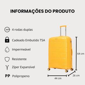 Fabricada em polipropileno resistente, a mala garante durabilidade e proteção contra impactos.