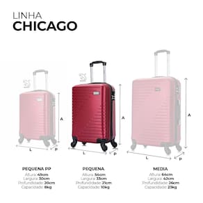 A mala pequena 10kg Chicago é uma das mais escolhidas da Swiss Move, por sua praticidade e estilo moderno. Com design de listras horizontais, rodinhas que giram 360 e fechadura com segredo, é a escolha certa pra quem quer levar sua bagagem à bordo.