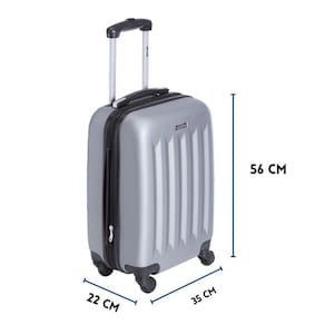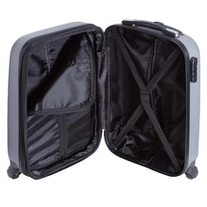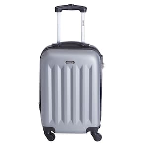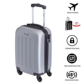 Cor: Prata Marca: Sestini Material: ABS 4 rodas Carrinho embutido regulável Alça superior Textura microdiamante e fechadura Interior totalmente forrado em poliéster Cinta elástica cruzada e divisória com zíper Tamanho: pequena de Bordo
