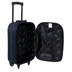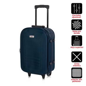 Característica da Mala Pequena Lucerna Cor: azul Tamanho: P Material: Poliéster (EVA) 2 rodas Carrinho externo regulável Alça superior Interior forrado em poliéster Cinta elástica com trava Garantia: 3 meses Dimensões (A x L x P): 53x33x17 cm Peso (Kg): 2,6 Capacidade (Litros): 27