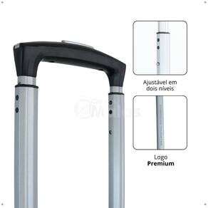 Rodas duplas e fixas, com giro de 360 para deslocamento suave em qualquer direção Função expansível, aumentando o espaço interno quando necessário Divisor interno com zíper para separar roupas e pertences Bolso interno com zíper de fácil acesso Elásticos internos para sustentação e organização dos itens Alça retrátil ajustável em dois níveis, com logo premium Estrutura rígida em material de alta durabilidade Design luxuoso e moderno, que combina estilo com praticidade