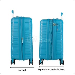Expansível: seu maior destaque é o zíper expansor, que aumenta a profundidade da mala em até +2cm, garantindo mais espaço para roupas e acessórios quando necessário.