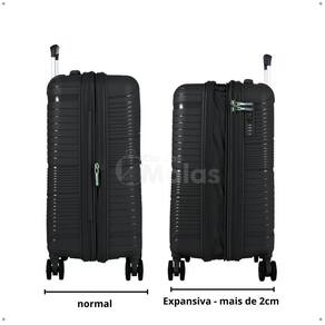 Expansível: seu maior destaque é o zíper expansor, que aumenta a profundidade da mala em até +2cm, garantindo mais espaço para roupas e acessórios quando necessário.