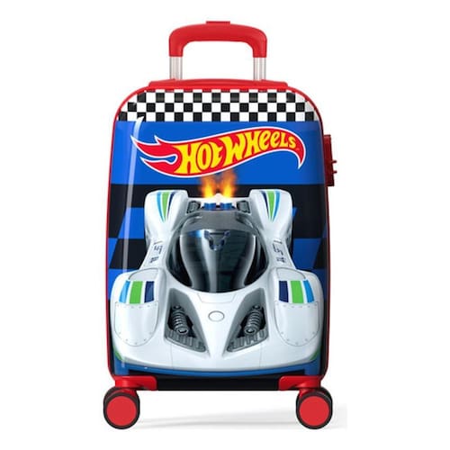 A Mala de Viagem Rígida Pequena 360 Hot Wheels é feita com estrutura rígida em ABS, com cadeado embutido, com rodinhas duplas que giram 360 e podem ser levadas à bordo. Além disso, possui identificador, divisórias internas para organização e puxadores com regulagem de altura.