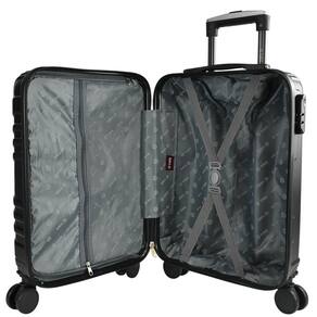 - Material: ABS - Rígida - Dimensões: 55 cm x 35 cm x 25 cm A x L x P - 4 rodas 360 - Alça superior - Cadeado incorporado - Puxador com botão liberador - Puxador com regulagem de altura - Cinta ajustável com trava - Divisor e organizador de compartimento - Tamanho P - Vai a Bordo - Suporta até 10 kg.