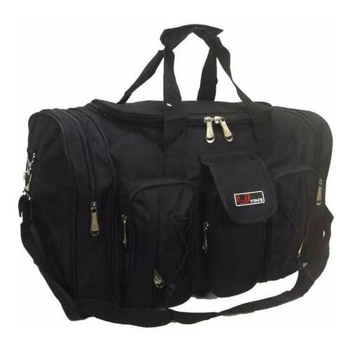 Principais características: - Bolsa Mala Viagem Sacola Média Reforçada Esportiva - Cor: Preto - Tamanho: Médio - Gênero: Unissex - Confeccionada em poliéster grosso e resistente - Compartimento principal vulcanizado com fundo duro - Alça transversal para transporte e alça de mão - 2 bolsos laterais e 3 bolsos frontal - Medidas aproximadas: C= 50 cm x L= 28 cm x H= 30 cm - Volume: 40 L - Peso: 0.8 kg