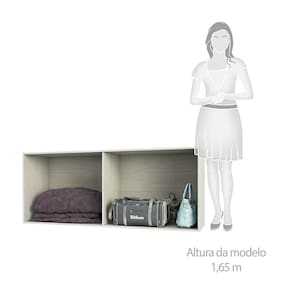 O módulo closet foi projetado para atender diferentes necessidades, este aéreo pode ser utilizado com cama de 158cm de largura, ou em outros cômodos da casa para guardar e organizar seus objetos. Acompanha sistema de fixação na parede.