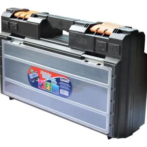 Maleta master box 5007Ideal para guardar ferramentas elétricas, em especial furadeiras, marteletes, serra tico tico e vários acessórios.Possui um grande compartimento externo para colocar parafusos, pontas de parafusar, buchas, e mantê-los separados um dos outros, e fechados.Especificação:Caixa plástica para armazenar furadeiras, serra tico tico, marteletes e acessórios com alça maletaFechamento com 2 travas e possibilidade de fechar com cadeado para maior segurança07 compartimentos externosTampa transparente para melhor localização das peçasIdeal para armazenamento de furadeiras, serra tico tico, marteletes e acessóriosMedidas: 48,0x28,0x14,0 cm (compr. X lar. X alt.) - 19
