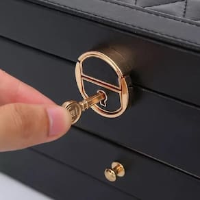 Portabilidade e PraticidadeCompacta e leve, a maleta mede 23 x 17 x 9 cm, sendo perfeita para viagens. Leve suas joias favoritas com você para qualquer lugar, sabendo que estarão seguras e organizadas. Além disso, o material resistente à água e fácil de limpar garante que a maleta continue sempre com aparência de nova.