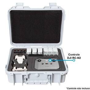 Internamente, a maleta possui compartimentos personalizados e espuma de alta densidade, garantindo que o drone, baterias, controle remoto e cabos permaneçam organizados e protegidos contra impactos e riscos. Seu revestimento externo rígido oferece resistência a poeira, água e quedas, tornando-a ideal para transportar seu drone com segurança e praticidade.