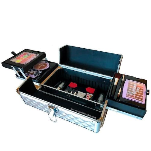 Maleta com Maquiagem Artist MakeUp Jasmyne Pro Rosa JS06063 Maleta com Maquiagem Artist MakeUp Jasmyne Pro Rosa JS06063 Maleta com Maquiagem Artist MakeUp Jasmyne Pro já vem completa pronta para uso Contém: 1 Maleta Cor Rosa com chave Tamanho aproximado da maleta: 29cm de largura x 18cm de altura x 18cm de profundidade. 1 Paleta de sombras coloridas com blush 1 Paleta de sombras Nude 1 Pincel Para pó e blush 1 Pincel para sombra 1 paleta de sombra de sobrancelhas 1 paleta de pó e contorno 1 Batom 1 Primer Spray 1 Máscara para Cílios 1 Corretivo líquido 1 Base líquida 1 Batom película 1 Primer de olhos 2 Esponjas para maquiagem