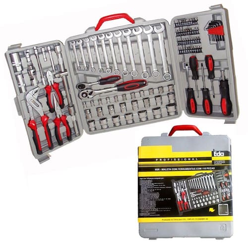 MALETA COMPLETA DE FERRAMENTAS LINHA PROFISSIONAL COM 110 PEÇAS