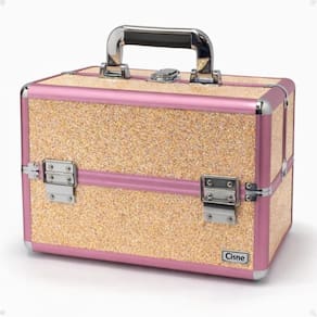 Maleta de Maquiagem Cisne Linha Shine Salmão Glitter e Rosa com 3 Bandejas – CSN-5171B A Maleta de Maquiagem Cisne Linha Shine é perfeita para quem busca organização, praticidade e muito estilo. Com acabamento Salmão Glitter e detalhes em rosa, ela traz um visual premium e estrutura resistente para guardar maquiagens, pincéis e acessórios com segurança. Possui 3 bandejas articuladas, que facilitam a visualização e deixam tudo sempre à mão — ideal para uso pessoal ou profissional.