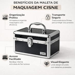 Produto: Maleta de Maquiagem Cisne Preta e Prata com 1 Bandeja Csn-lc5131