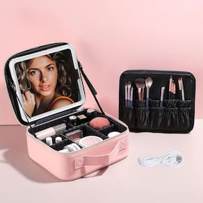 Transforme sua rotina de cuidados com a beleza com a Maleta de Maquiagem com Espelho Iluminado. Elegante, funcional e portátil, ela é perfeita para quem busca organização, praticidade e uma iluminação ideal para makes impecáveis, seja em casa ou em movimento.