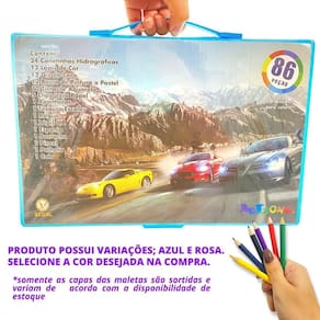 Funções: expressão da criatividade, estimular a imaginação. O que você vai receber em sua casa conteúdo da embalagem Maleta de pintura infantil com 86 peças que contém: 24 canetinhas hidrográficas 12 lápis de cor 12 giz de cera 12 barra de pintura a pastel 12 tinta de aquarela 5 clips para papel 1 apontador 1 tesoura escolar 1 régua 1 lápis hb 1 esponja 1 borracha 1 pincel 1 palheta 1 cola