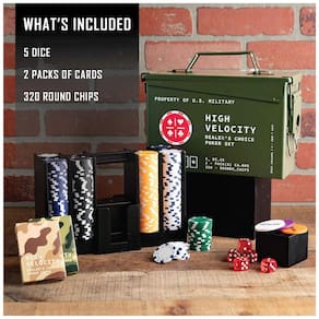 CONJUNTO DE POKER ÚNICO Apresente seu conjunto de jogos com classe. Caixa tátil real cheia de tudo o que você precisa para qualquer missão de jogo de cartas. Salgadinhos de pôquer, 2 baralhos de cartas e fichas cegas. Tudo cuidadosamente zenado em uma bandeja deslizante escondida na caixa tátil. CAIXA TÁTIL DE DIREITO PESADO Caixa tátil com parte superior articulada e alça de transporte para operações móveis. A impressão e as mensagens de assinatura fazem uma declaração ousada e atestam seu perfil de alto calibre. Abra a tampa da caixa e seu conjunto de pôquer está esperando para ser liberado. Tudo cuidadosamente zenado em uma bandeja deslizante, segurando convenientemente todos os seus cartões e acessórios. 320 CHIPS fichas de pôquer de 11,5 gramas com peso pesado. 5 cores para jogar em tempo real. 2 EMBALAGENS DE CARTÃO Contém 2 baralhos de cartas. CONJUNTO DE PRESENTE DE POKER Perfeito para dar presentes ou estragar a si mesmo. Presentes para o pai, dia dos pais, presentes para homens, presentes para padrinhos, namorados ou praticamente qualquer jogador de cartas. Língua Inglês Dimensões do produto 27,94 x 10,16 x 17,78 centímetros 11,62 gramas Idade recomendada pelo fabricante 12 anos ou mais Marca: Não Informado