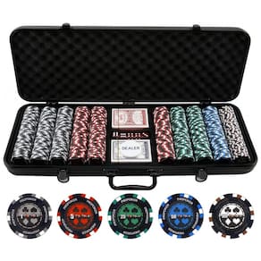 500 fichas de argila de pôquer de qualidade de cassino de 13,5 gramas Combinação de cores de fichas de pôquer 150 branco, 150 vermelho, 100 verde, 50 azul, 50 preto Design exclusivo de fichas de pôquer com denominações O conjunto de fichas de pôquer inclui um estojo de ABS preto, 2 baralhos de cartas, 5 dados vermelhos e um botão do dealer Caixa de pôquer ABS nova e aprimorada. A bandeja de cavacos interna sólida não racha e é muito mais forte do que a bandeja de cavacos antiga. Grande Conjunto de Fichas de Poker para Jogar com Amigos e Família As dimensões do item são 7,62 x 25,4 x 58,42 centímetros e o peso do item é de 13,5 gramas Marca: Não Informado