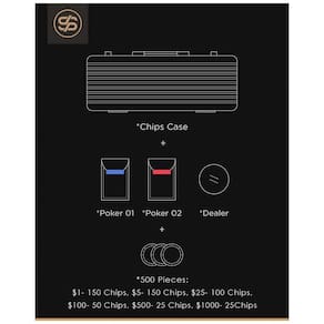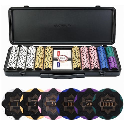 O primeiro conjunto de pôquer profissional e hobbyista. As equipes de engenharia e design do SLOWPLAY passaram 18 meses construindo este produto, e todos os detalhes foram criados com a maior atenção para ajudar os jogadores a aproveitar o jogo que amam. Ele reflete bom gosto e boa qualidade, tornando as fichas de pôquer um presente ideal para os entusiastas do pôquer. Estojo de transporte de chips estamos redefinindo como deve ser um bom caso. A carcaça externa é feita de material de policarbonato alemão Bayer, fabricado com moldagem por injeção de uma peça, tornando o extremamente durável. Também inclui uma estrutura de liga de alumínio personalizada, trava de liga de zinco e alça grande. Os chips feitos à mão apresentam suporte interno e materiais de embalagem de couro PU. Super portátil com material preto de corpo inteiro. Batatas fritas artesanato requintado graças a uma injeção dupla, núcleo de ferro e um peso de 14 gramas. O design do chip foi inspirado no estilo Art Deco do início do século XX. A composição geométrica simétrica e simples combina perfeitamente a grandeza da década de 1920 e a simplicidade contemporânea para elevar a experiência do pôquer a um nível. Relação de quantidade com base na taxa de uso real do número de fichas, o conjunto de 500 fichas atendem facilmente às necessidades de 9 a 10 pessoas.