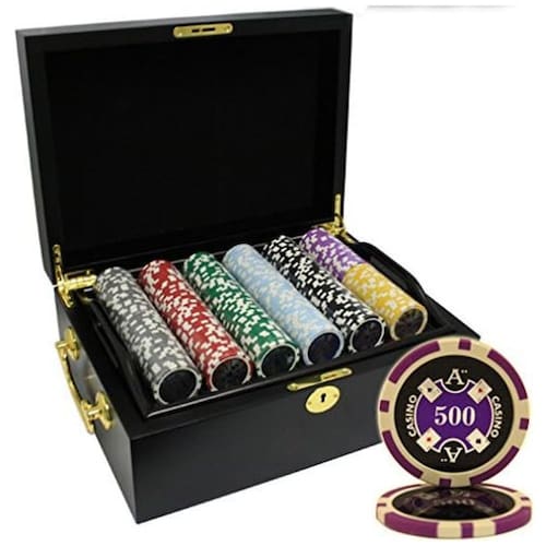 Este é o nosso cassino de 13,5g de qualidade de combinação de argila pesada chips de pôquer Inclua fichas de 500pcs fichas de pôquer de cor preta de 500ct, estojo de retenção de madeira 1 botão de revendedor, 2 baralhos de baralho 500 fichas numeradas 150pcs 1 100pcs 5 100pcs 25 50pcs 50 50pcs 100 25pcs 500