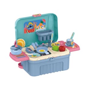 O personagem alienígena da animação de grande sucesso Lilo & Stitch da Disney, traz ainda mais diversão com a maleta de viagem em modo 3 em 1: Maleta de Viagem, Acessórios de Cozinha e Mesa para Cozinhar.