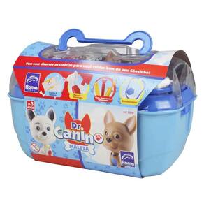 A Maleta Dr. Canino um Pet Shop e Veterinario portatil para levar e brincadeira onde quiser. As criancas, na brincadeira, podem ser especialistas em veterinaria, pois a maleta, alem de acessorios voltados ao ramo veterinario, traz itens para cuidados com o Pet. A maleta contem 1 Cachorrinho 15 Acessórios: 1 Cracha, 1 Tesoura, 1 Martelo, 1 Otoscopio, 1 Pinca, 1 Termometro, 1 Injecaozinha, 1 Estetoscopio, 1 Chuveirinho, 2 Frascos Shampoo e Condicionador, 1 Pente, 1 Secador, 1 Prateleira para acoplar na maleta 2 peças, 1 Tampo para o ralo do lavatorio.Os acessorios ricos em detalhes tornarao sua brincadeira ainda mais divertidaINMETRO: CEBRI/IQB000280 NM300/2002