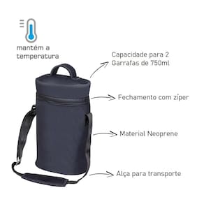 Sobre o Produto: - Maleta em Neoprene Boccati para 2 garrafas de 750ml - Mantém a bebida gelada por até 1 hora.