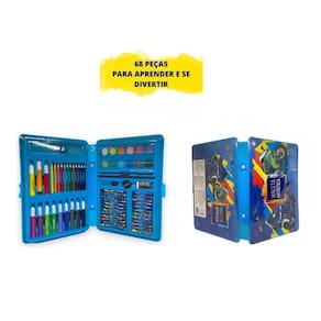 Maleta Estojo de Pintura Artística Infantil com 68 Peças Azul Maleta Estojo de Pintura Artística Infantil com 68 Peças Azul A maleta artística além de ser um produto muito divertido, também auxilia no desenvolvimento de vários sentidos da criança tais como criatividade, percepção visual, coordenação motora, raciocínio lógico, etc. Um conjunto completo acondicionado em um estojo tipo maleta para melhor organização e transporte. Com ele a diversão está garantida. Especificações: - Idade recomendada: a partir dos 3 anos. - Composição/Material: 12 Lápis de Cor12 Canetinha Hidrocor12 Giz de Cera12 Giz Pastel12 Tinta Aquarela1 Lápis1 Régua1 Apontador1 Borracha1 Pincel1 Tubo de Cola2 Clipes - Dimensões aproximadas do produto cm - A x L x C: 4 X 21 X 31 cm