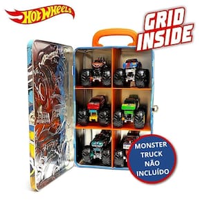 2. Quantos Monster Trucks cabem na maleta Armazena 6 Monster Trucks Hot Wheels.