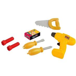 O kit inclui uma furadeira, um serrote, chaves e diversos acessórios, tudo cuidadosamente projetado para parecer autêntico, permitindo que os pequenos construtores mergulhem totalmente em seu faz-de-conta.