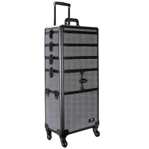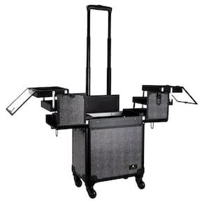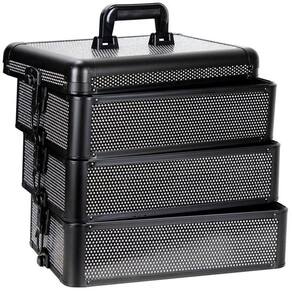 Maleta Maquiagem Profissional Alumínio ABS 4 em 1 Pelegrin PEL-M1026 Preta Cristal