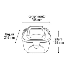 Dimensões: 28,5cm x 24,5cm x 16,5cm (comprimento x largura x altura)