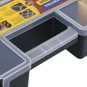 A Maleta Organizadora Plástica 17 Tramontina é ideal para quem necessita separar parafusos, bits, brocas e porcas, além de alicates, chaves ou martelos Com sua estrutura dinâmica e durabilidade, ela é sinônimo de praticidade e organização durante o serviço.