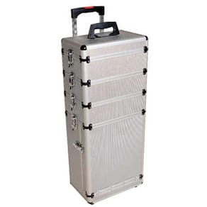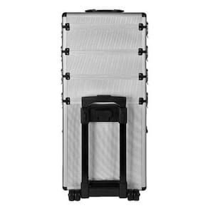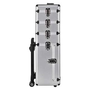 -Possui bandejas empilhaveis ??como gavetas com diversos compartimentos para organizar os objetos e rodas para facilitar sua transferência.
