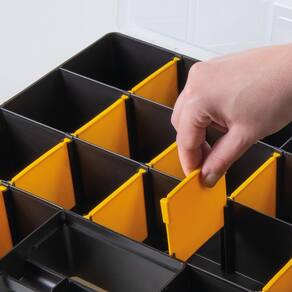 Possui 19 compartimentos no total para a separação detalhada de materiais.