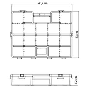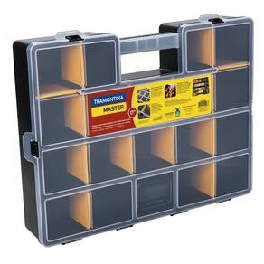 Maleta Plástica Organizadora 17" Tramontina MASTER com Divisórias MóveisA Maleta Plástica Organizadora 17 Polegadas Tramontina MASTER com Divisórias Móveis vai deixar suas ferramentas mais organizadas e fáceis de transportar! Com divisórias que facilitam o manuseio, ela é produzida em plástico. Além de ferramentas, ela é ótima para guardar artigos de pesca, entre outros acessórios. Um produto funcional que serve para deixar seus objetos em ordem. Corpo e divisórias móveis injetadas em polímero de alta resistência. 19 compartimentos internos. 14 divisórias móveis que possibilitam a personalização do espaço interno da maleta. Tampa transparente com reforços que aumentam sua resistência. 4 Travas para fechamento seguro (2 frontais e 2 laterais). Projetada para fácil personalização e portabilidade. Possibilita encaixar martelo de tamanho pequeno e médio.